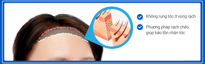 bác sĩ thực hiện phương pháp rạch chéo giúp giữ nguyên chân tóc, tóc mọc tự nhiên và vùng rạch không bị lộ ra ngoài.